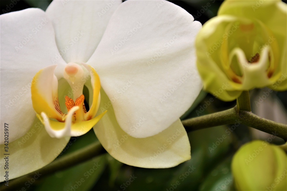 foglie di piante da giardino e fiori di orchidea