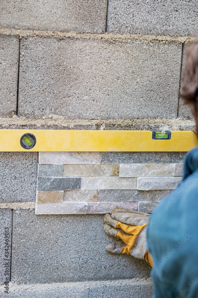 Man placing ornamental tile