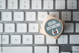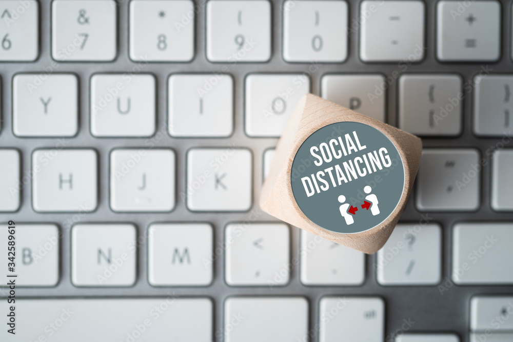 cube with message SOCIAL DISTANCING on a computer keyboard