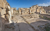 Statues and basin in the great complex of roman gymnasium in ancient Salamis, Famagusta, Cyprus