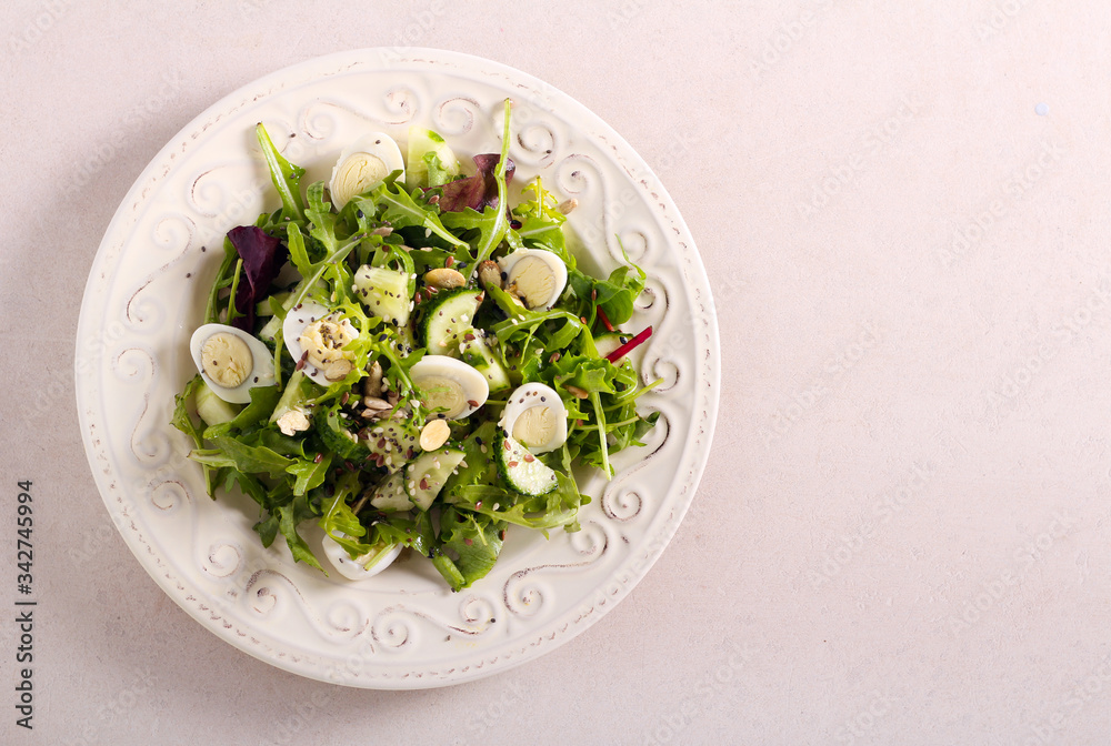 Fresh vegetable salad with quail eggs