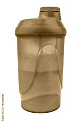 protein cocktail in shaker on white