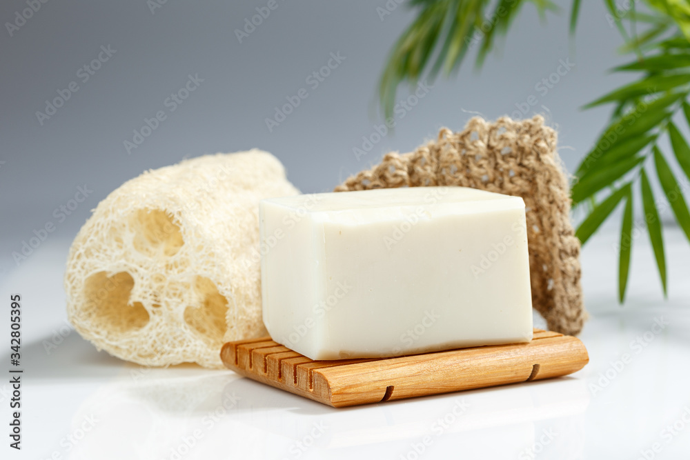 Natural Soap on Twine Scrubbing Sponge with Loofah