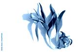 Close-up of an isolated pink tulip with flower, stem, leaves and bulb with root, against white background