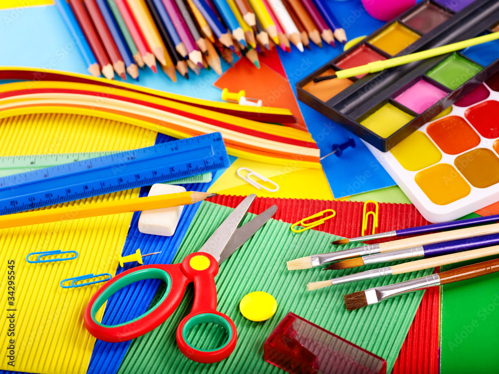 Close up of school supplies.