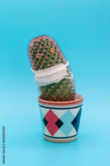 Cactus in a medical mask, concept of universal mandatory wearing of masks