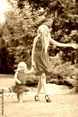 Beautiful mother with her daughter wear pink dresses walking in green spring park. Happy Family fun. Lifestyle concept.
