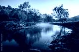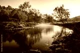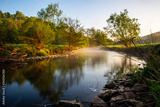 Kleiner Fluss am Morgen mit leichtem Nebel.