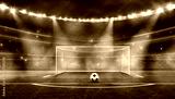 ball on the green field at soccer stadium. ready for game in front of the soccer goal
