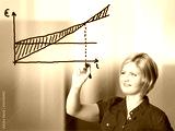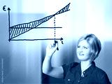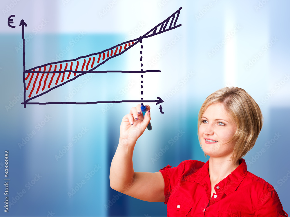 junge Frau zeichnet Gewinnschwelle-Diagramm