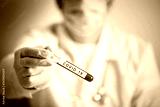 The epidemic of coronavirus. The doctor keeps a blood test.