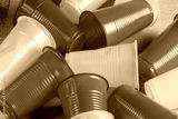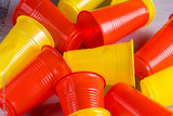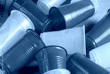 Colored plastic cups. The concept of plastic recycling and the environment. Plastic waste.