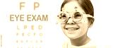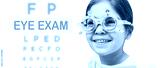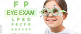 Child eye test and eye exam. Little girl having eye check-up, wearing special glasses. Vision diagnostic