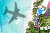 Symbolic picture vacation travel traveling luxury villa sea airplane flying Seychelles aerial photo beach