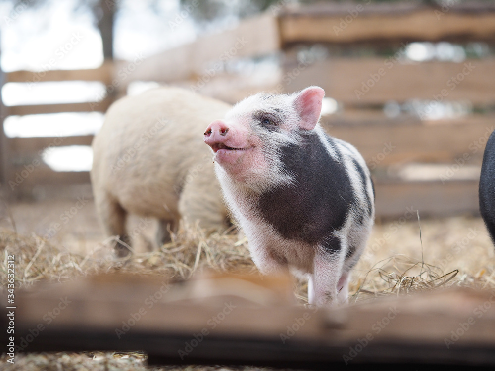 Portrait of a cute spotted pig on a free-range farm