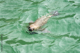 South American Sea Lion swimming in the sea looking for fish to hunt. A view of a young sea lion mammal inside the water at Atacama Desert. Amazing sea wild life powered by Humboldt current