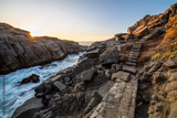An amazing and idyllic footpath in between the granite rocks making it a fantasy landscape from another age. A stone pavement cut the sea cliffs and let us pass through an awe landscape during sunset
