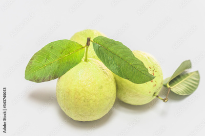 Fresh guava laid out on a white background