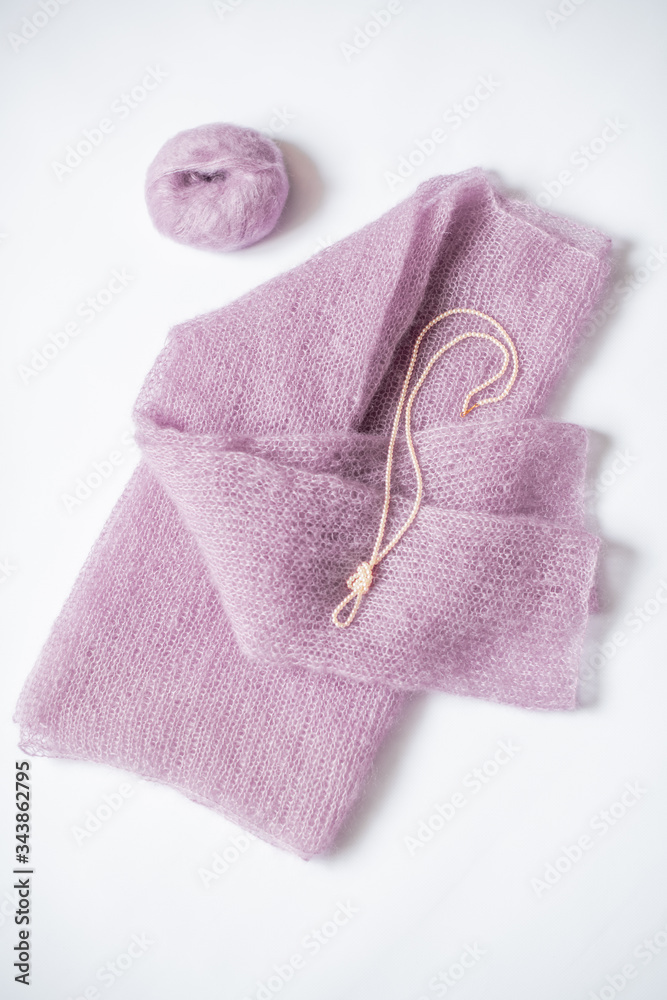 Background. Texture of hand-knitted fabric of thin fluffy mohair.