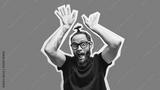 Crazy hipster guy emotions. Collage in magazine style with happy emotions. Discount, sale, season sales. Colorful summer concept.