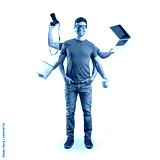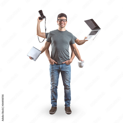 Funny media guy isolated on white