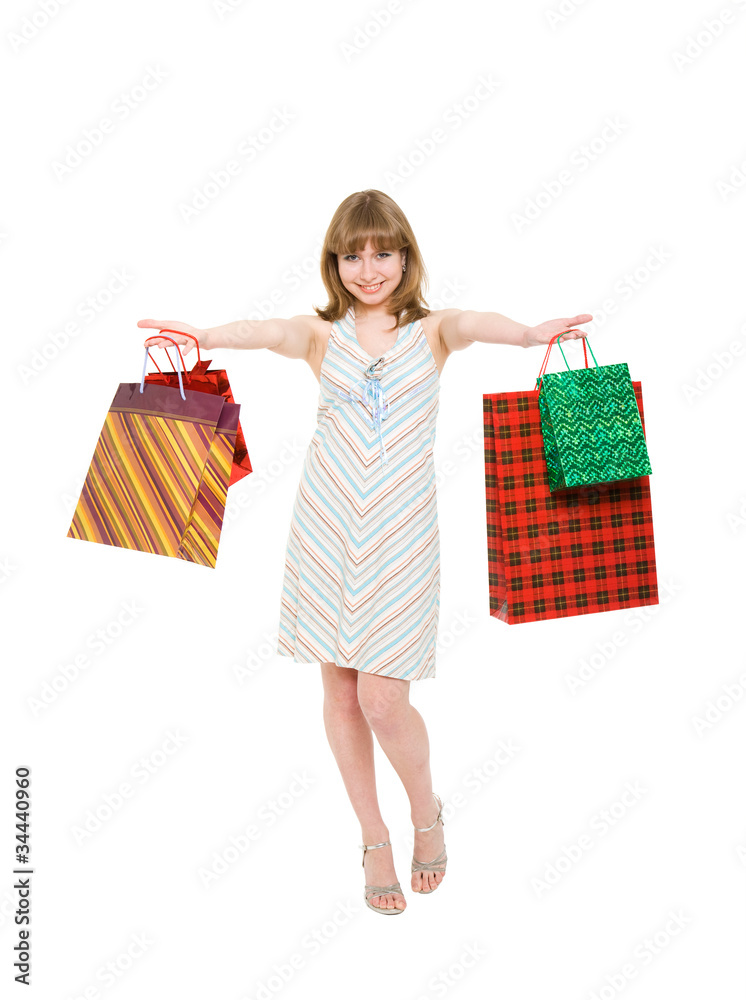 happy girl with purchases.