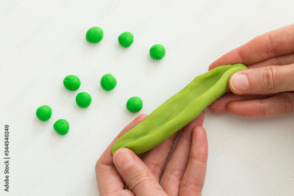 step by step making pea vegetable with play dough for children's activity in the school art lesson.