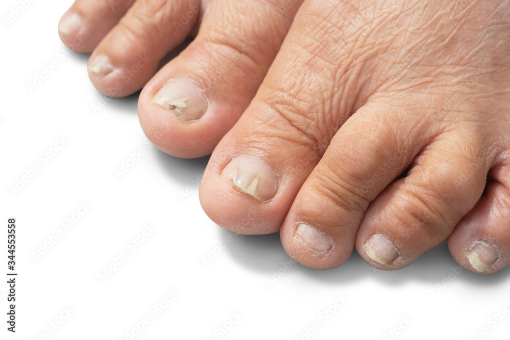 Onychomycosis with Fungal disease of the feet is on white background with clipping path