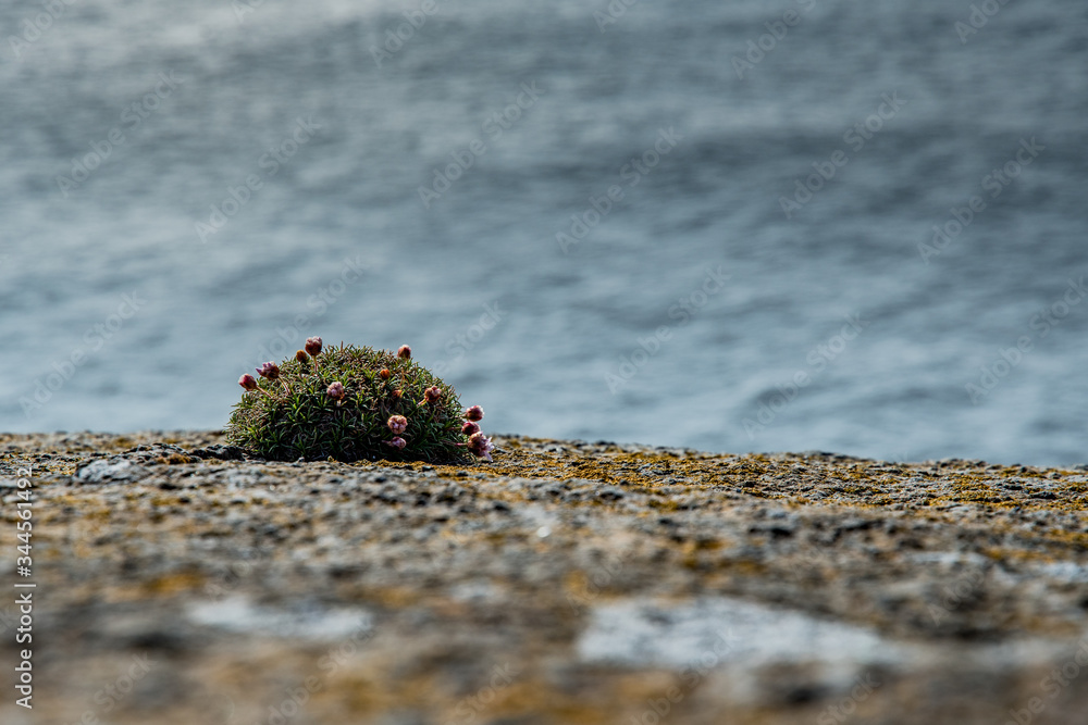 fiori solitari crescono sulla roccia a strapiombo sul mare