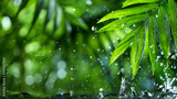 fresh green leaves with water drops over the water , relaxation with water ripple drops concept
