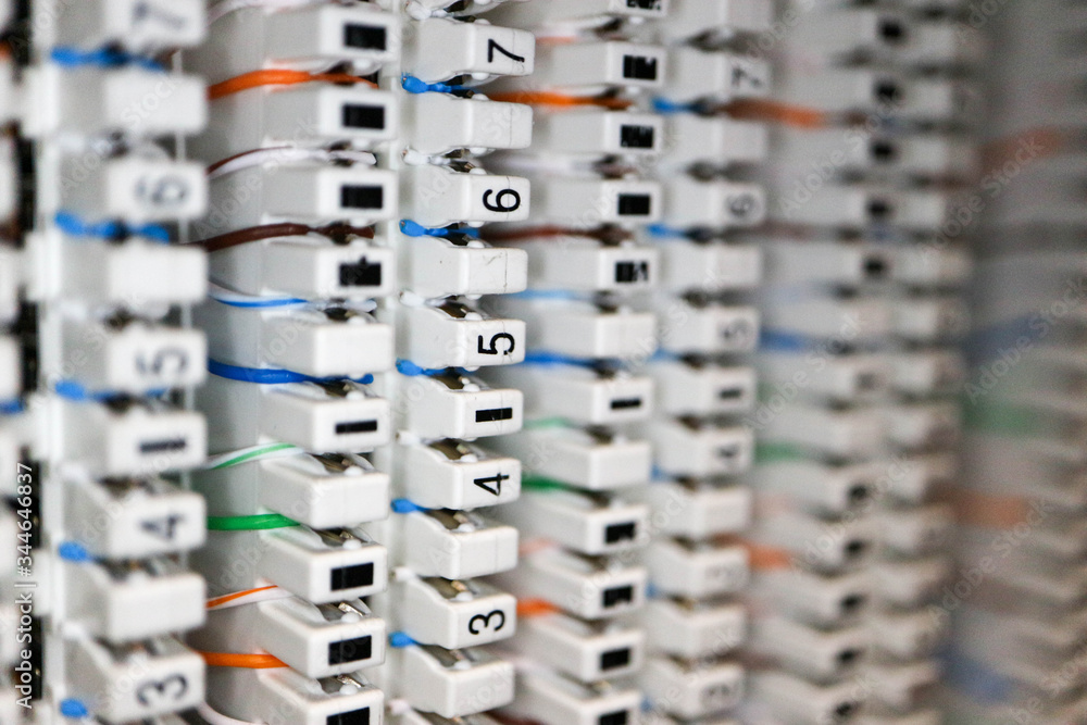 telecom quick connect punchdown blocks with colorful twisted pair close up