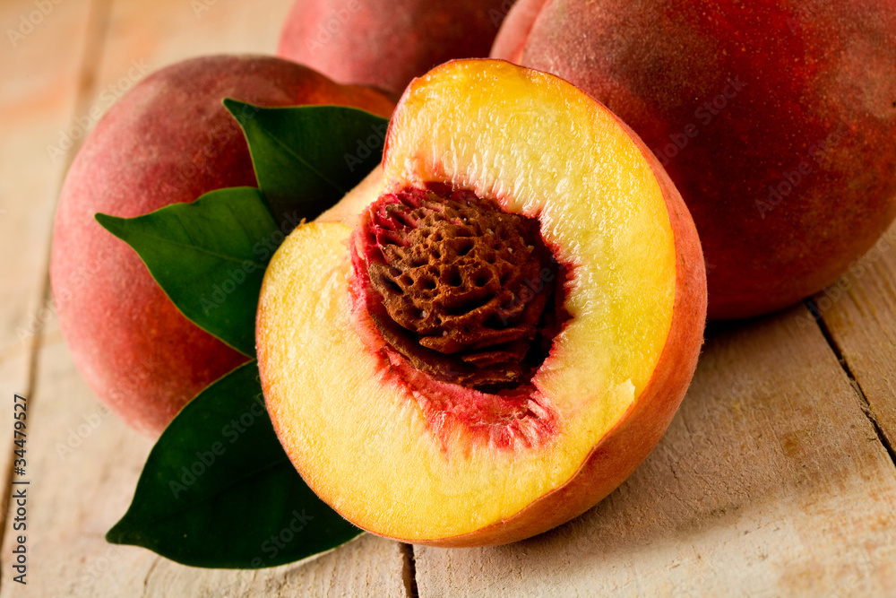 Pesche su tavolo di legno