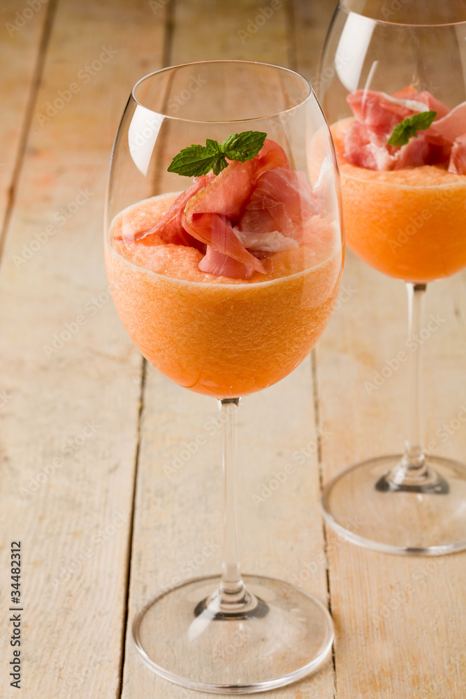 Cocktail di Prosciutt e Melone su tavolo di legno