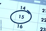 15th Date of the Month marked in red marker pen on a simple planner calendar
