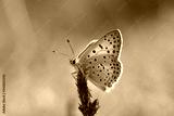Sooty Copper butterfly on flower. Small blue butterfly, Lycaena tityrus, on meadow