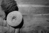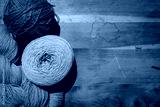 Colorful balls and skeins of yarn on an old wood backbround, creative copy space, knit and crochet needle arts theme, horizontal aspect