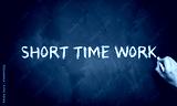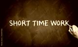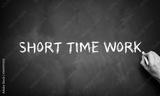 hand is writing text SHORT TIME WORK on a blackboard