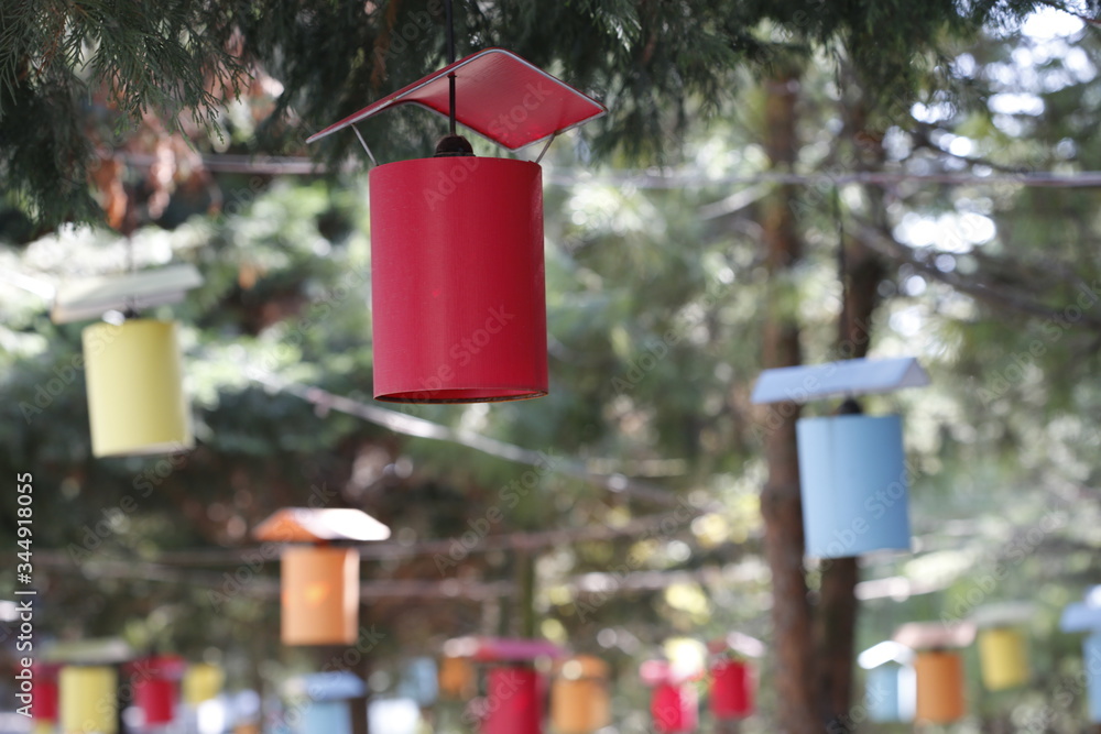 colorful lanterns in the forest