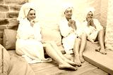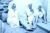 Salt room. Unforgettable weekend at the spa. Pleasant and joyful friends enjoy and relax together at the spa resort.