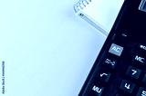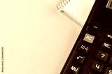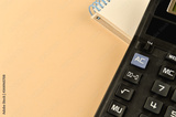 Calculator and notepad on neutral background. Finance accounting concept. Business. Banking. Copy space