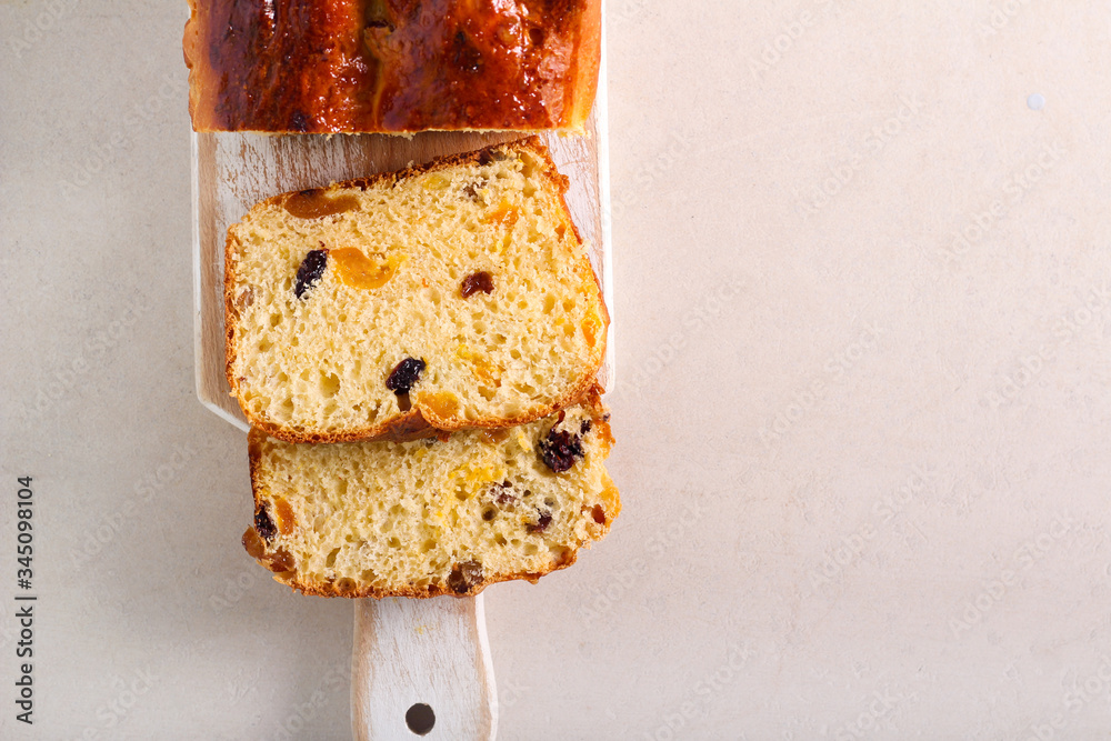 Fruit sweet tea cake, sliced