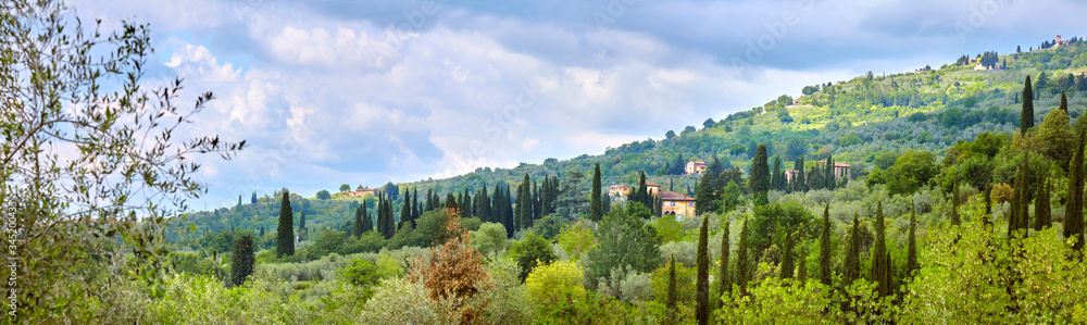 Panoramic view with castle near Reggello, Tuscany, Italy.