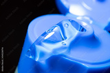 Blue cream gel poured out of container, macro view. The detail of a blue alcohol hand sanitizer gel in open tube, isolated on black background.