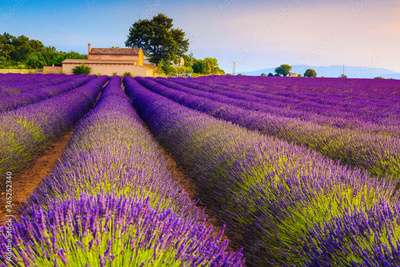 Wonderful purple lavender bushes and plantation in Provence, Valensole, France
