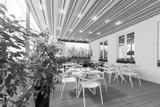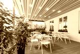 Beautiful restaurant summer terrace interior with moving roof