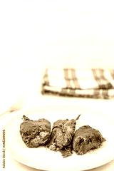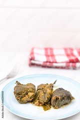 Minced meat rolls in Chard served on the plate. Traditional balkan meal made with chard and minced meat.