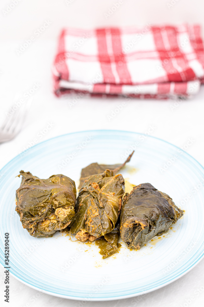Minced meat rolls in Chard served on the plate. Traditional balkan meal made with chard and minced meat.