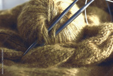 threads and knitting needles. Knitting blankets. Knitted sweater. Needlework as a hobby and business