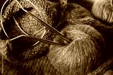 threads and knitting needles. Knitting blankets. Knitted sweater. Needlework as a hobby and business