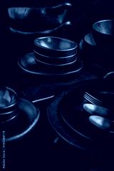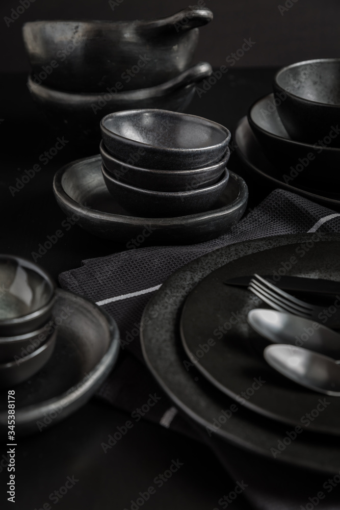 Dishes in minimalistic black design. Pure black.